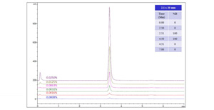 Monomix H2P-SAX色谱柱能有效定量中性两亲表面活性剂,例如吐温80、吐温20和泊洛沙姆,它们通常存在于生物样品生产过程中。具有刚性且为球形固体载体的树脂是由高度交联的聚苯乙烯/二乙烯基苯/改性剂(PS/DVB/M)组成,平均粒径40 μm,粒径分布窄 (D90/D10 < 1.3),具有理想的多孔结构和强大的化学&物理稳定性。用混合模式配体进一步共价修饰聚合物多孔微球,使微球具有水润湿性,同时能够吸收两亲表面活性剂。