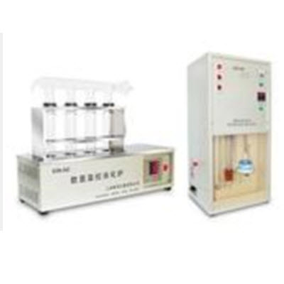 KDN-AD定氮仪:该仪器安装了自动控制蒸馏软件,采用常用水、开机后不需要调节水位、自动产生蒸气,消化炉部分采用了井式电热炉芯加热,提高了消化热效应。样品消化时,在消化管内注入适量H2SO4和样品,并将催化剂硒片放入管内(加入硒片可加速样品的消化煮解过程,缩短消化时间),消化过程中逸出的SO2等有害气体由消化炉上的排气装置排污管经抽气三通流水产生负压而排入下水道,可有效地抑制有害气体的外逸,省略了实验室中安装毒气通风橱;整个消化试样经45分钟左右即可完成消化煮解过程。