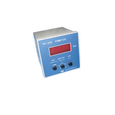 pH-200型 pH(酸度)计0.02级: 范围:0.00~14.00pH、 扩展-2.00~18.00pH 0~±1700mV 0.0~1.00℃ pH..mV.℃双显示温度补偿手动 外型尺寸100×100×100mm重量 3kg ABS