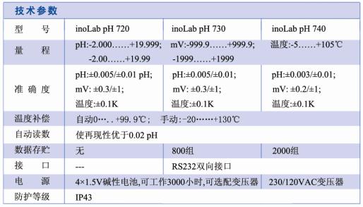 inoLab pH 730 实验室酸度计 技术参数: