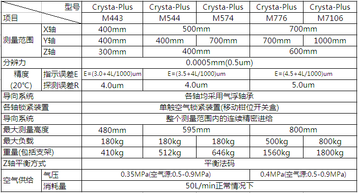 ●开发的手动气浮型三坐标测量机,追求高精度,低成本且简易的操作。Crysta-Plus M系列应用范围广适于从简单的尺寸测量到复杂形态的大范围测量。